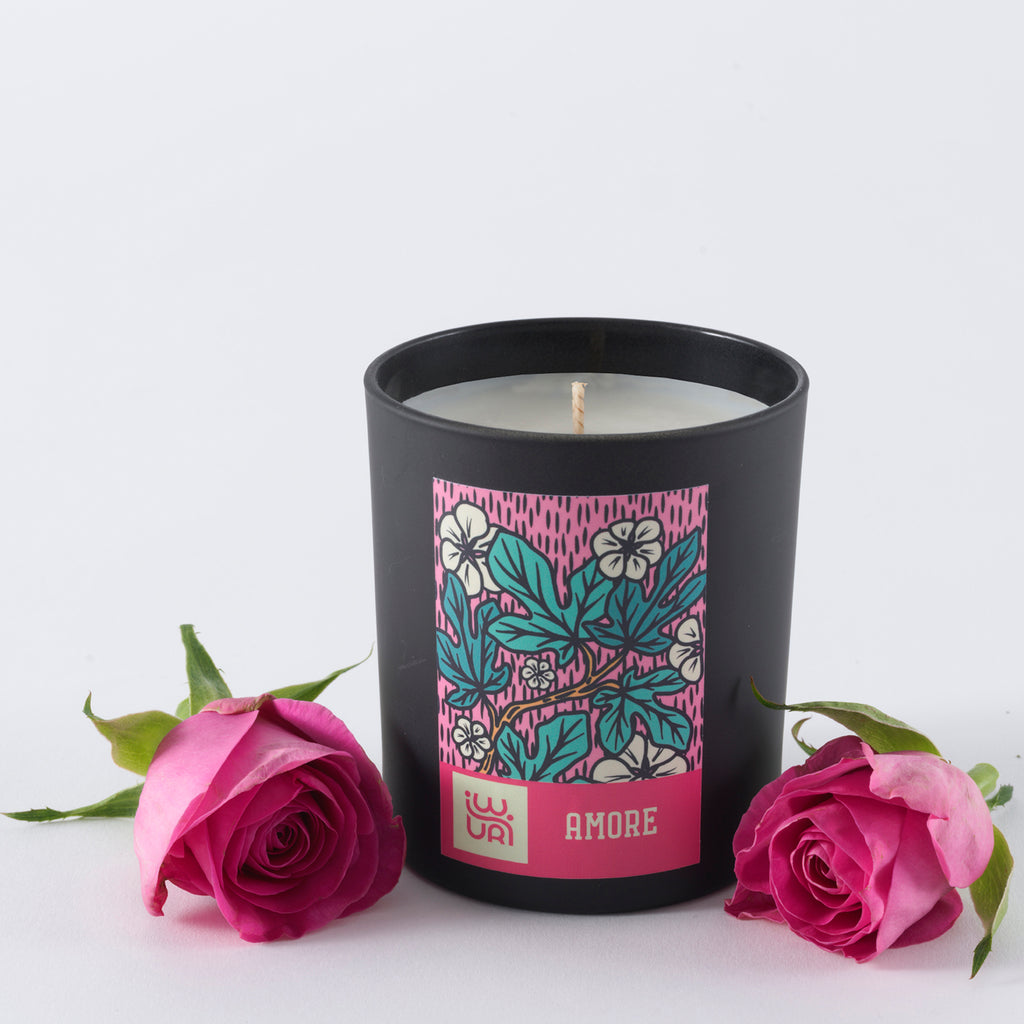 Each candle is presented in a beautifully designed box with a lined interior, accompanied by a candle care card.